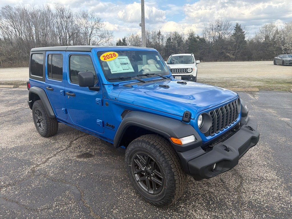Want more room? Want more style? This Jeep Wrangler Sport S is the vehicle for you. This 4WD-equipped vehicle handles any condition on- or off-road with the sure footedness of a mountain goat. With unequaled traction and stability, you'll drive with confidence in any weather with this Hydro Blue Pearl Coat 2026 4WD Jeep Wrangler Sport S.